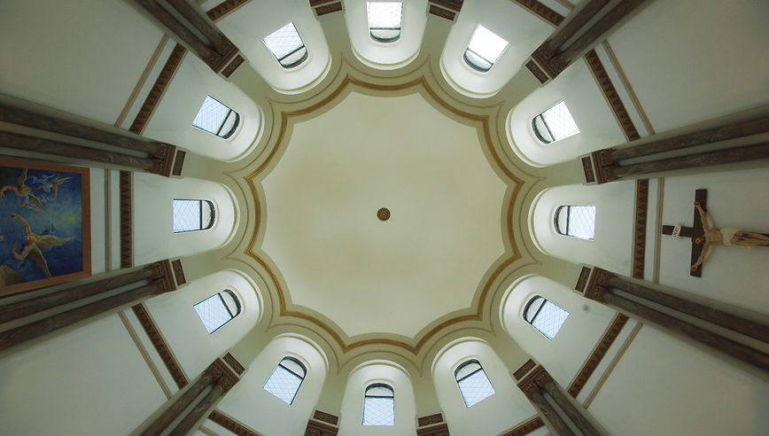 Localisée au centre d’une convergence de 6 ailes de détention, la coupole centrale de la chapelle de Bordeaux culmine à 17,5m de hauteur.